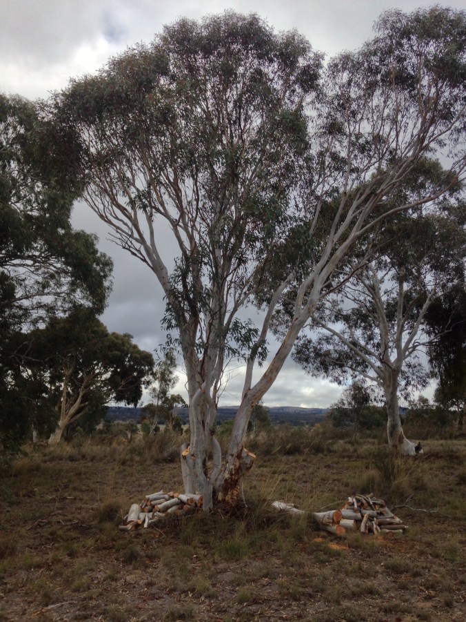 One paddock on the Rock Farm has many brittle gums (eucalyptus mannifera) and I have selected these as the primary target for my sustainable firewood harvesting.  This allows the Red Stringybark (eucalyptus macrorhyncha) and the red box (eucalyptus polyanthemos) to continue to regenerate.