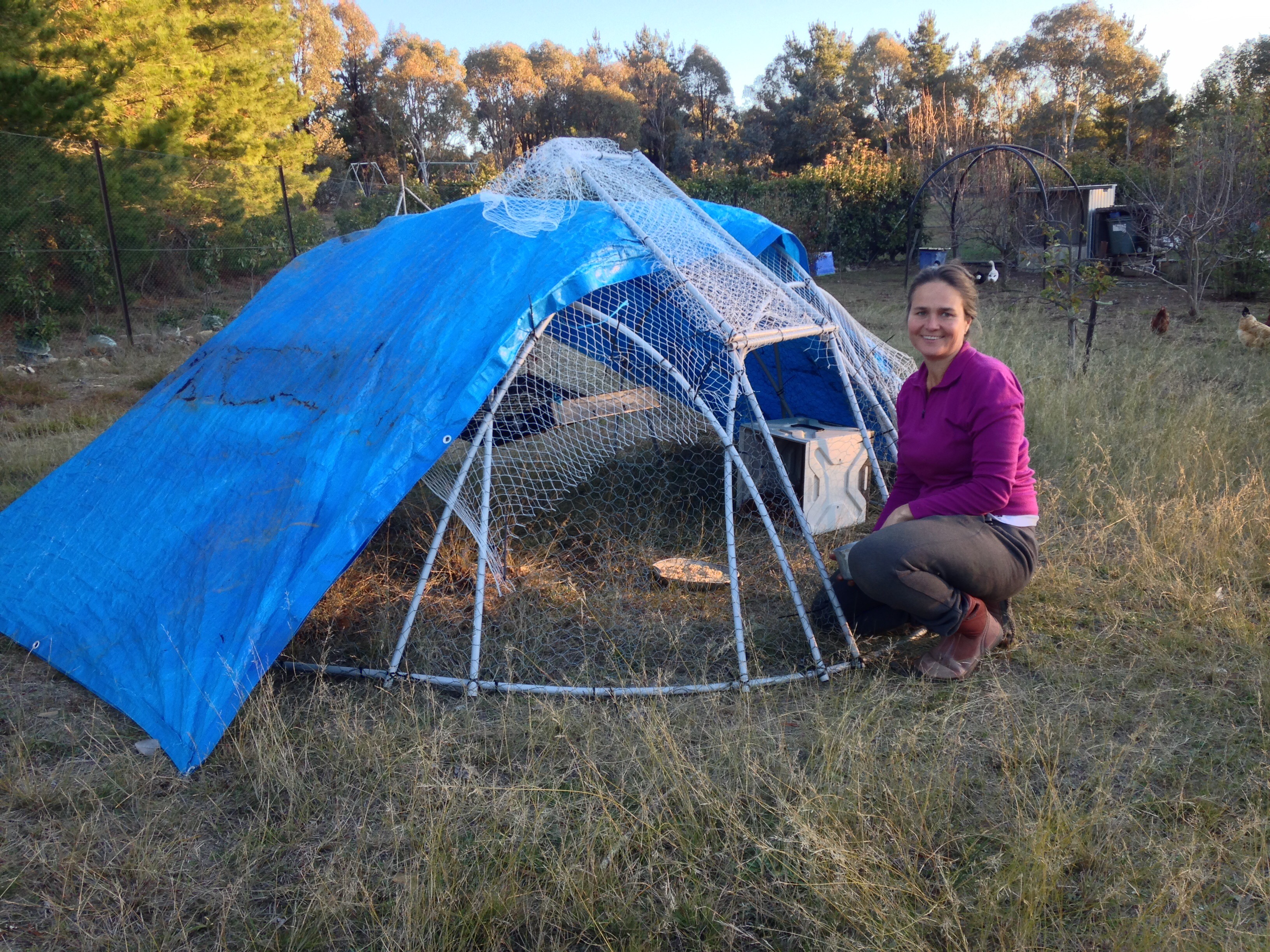 A new lightweight chook tractor was decided as the best means to separate our chooks, and provide all the benefits of portable weed control and fertiliser application. Importantly Jo found a wonderful design that looked like it might work for us. And it did!