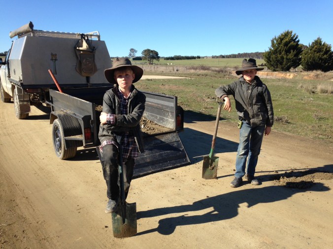 And they loved it. David kindly loaded our trailer with a bucket or two of great gravel, and we put the boys to work. After many years of making mud pies, and digging holes in all the wrong places, it was great to see their handiwork with a shovel extended to constructive projects too.