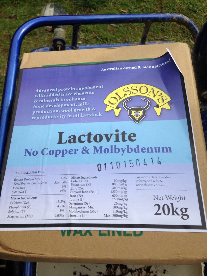 In this good wet winter, our problem isn’t enough food. There is plenty of bulk in the native grasses at the Rock Farm, but like Burke and Wills, I didn’t want our sheep starving on full bellies. With mineral deficiencies common, we are experimenting with a salt lick or mineral supplement block.