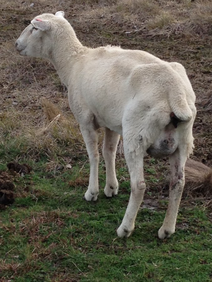 Sadly we found one dead lamb, and one ewe suffering mastitis. We took her up to the house and dosed her with apple cider vinegar. Sadly she didn’t survive either.