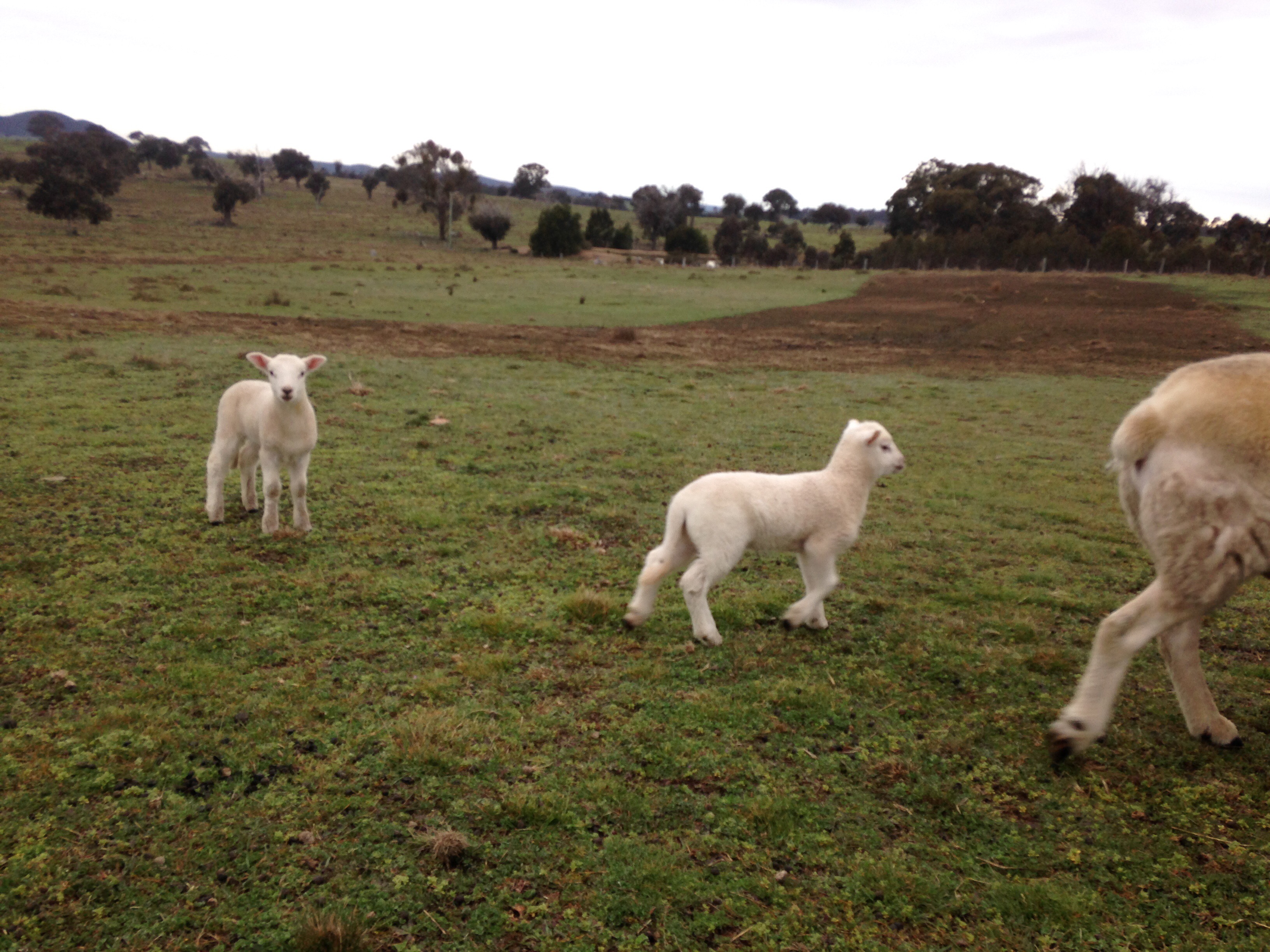 Our beautiful Wiltipoll ewes had lambed, and the spring lambs were frolicking in the fresh green grass. Yes lambs!