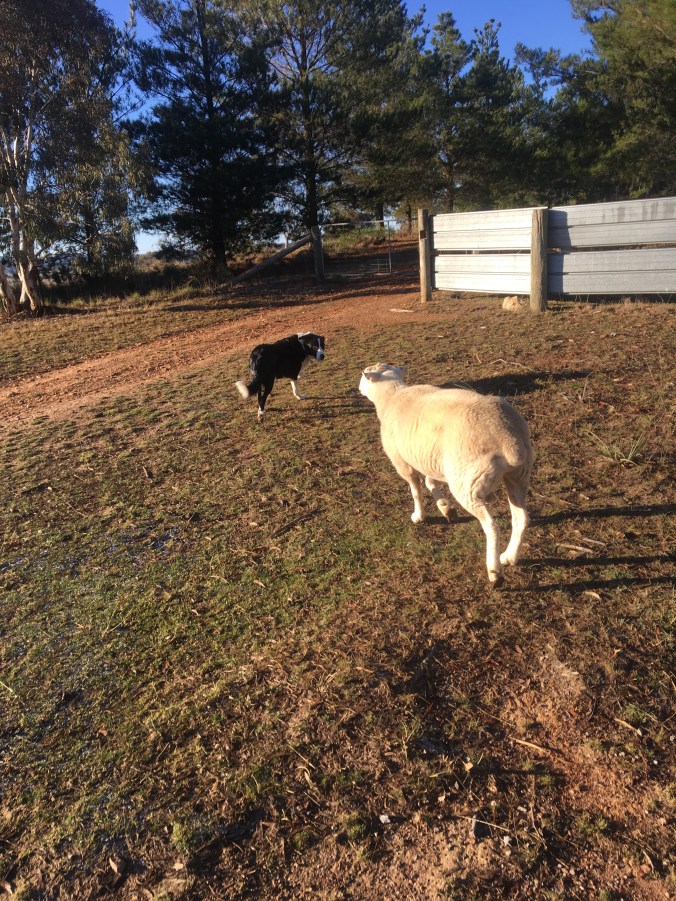 It also makes for an interesting stand off between the ram, and the dog, who might look like a sheep dog but is really a Labrador in disguise.
