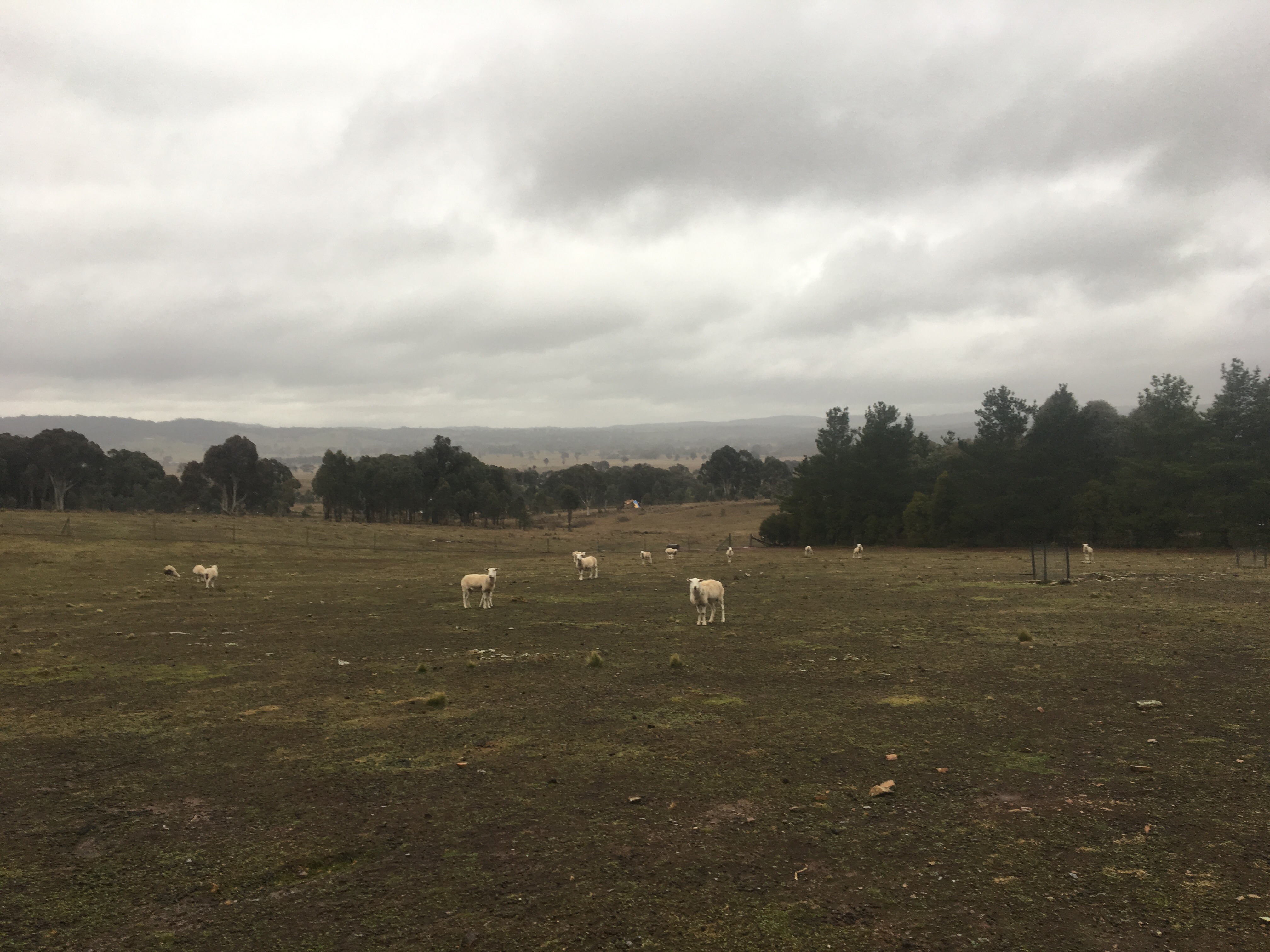 The ewes have plenty of shelter in their middle paddock, but as I am also supplementing their feeding with oaten hay, they tend to hang around the top paddock a bit. Whilst we have planted trees in this paddock, they barely provide a twig to shelter behind. There are solid windbreaks on two sides, but it is still exposed. On chilly mornings, it is the first paddock to catch the sun, and being the highest part of the property, it is popular with the ewes escaping the chilly air that sinks to the lower parts.