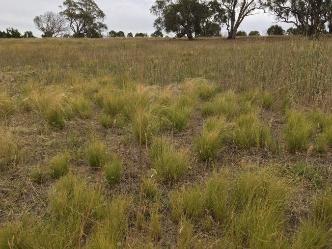 Serrated Tussock (Nassella Trichotoma) is common on our property. It made its way to Australia during the Gold Rush of the 1850s where it was used as stuffing in saddles. Not palatable for stock, it is most cost effectively controlled by spot spraying individual plants. The main chemical, flupropanate can also be applied in a granular form using a device similar to a salt shaker. The granules will activate in rain and provide a long term herbicide against re-germination of the plant, with minimal effect on other pasture, or it can be sprayed in a solution form.