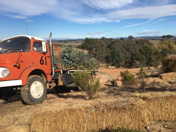 The other problem with the garden tank was the surrounding vegetation. The tank was essentially smothered in a range of plants that made access difficult and contaminated the water supply with dead leaves. It took three loads on the back of the old Merc, Myrtle to clear the space. The prunings, along with some rotten hay bales, were put to good use in stabilising some gullies.