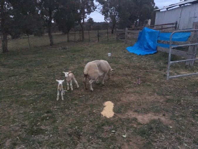 Pregnancy Toxaemia is often associated with fat ewes and twin lambs. Wiltipolls are bred to respond well to feed, and our ewes could well have been described as fat. Wiltipolls also are known to produce lots of twins, and the birth of these twin lambs brings our total lambs to 20, from 11 ewes. We won’t make an official count until we mark the lambs.