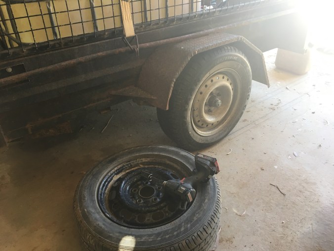 The trailer sits by the shed, easily accessible. I gave our fire trailer a service a couple of months ago (the fire danger season starts on 1st October). All was in order, but during my rounds the other day I noticed one of the tyres was flat. I pumped it up, but over the course of a few days it slowly went flat again.