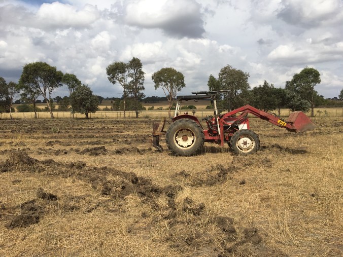 The purpose of this is two-fold. It aims to aerate the soil, increasing the microbial activity within the soil, thereby improving the availability of nutrients for grass. It also allows moisture to penetrate deep into the soil, reducing run off and storing moisture in the soil for longer. Pat Coleby is one of the many authors who recommend ripping lines along contours and I thought it was worth the experiment. The main difference is she recommends ripping after rain… but with barely any rain falling this month, I figured I was best to see if we could open some of the soil up and ensure if any rain does fall, we could capture it.