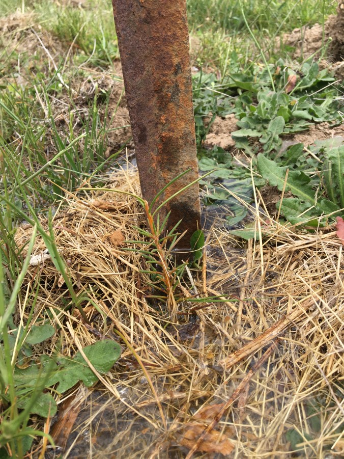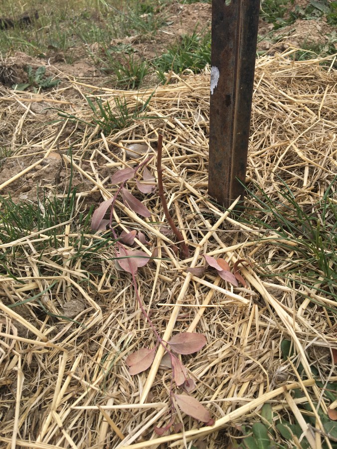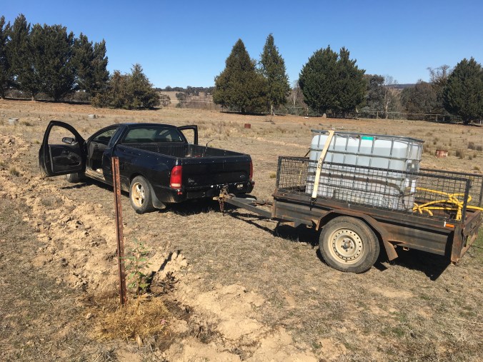 After planting the seedlings, we watered them a few times to get them going. It was good pre-season maintenance for our portable water tank, even if it looked a bit like a moonscape at the time. A small shower of rain a couple of weeks ago had turned the grass in the rip lines green, and encouraged the weeds to grow. Sadly it wasn’t all good news.