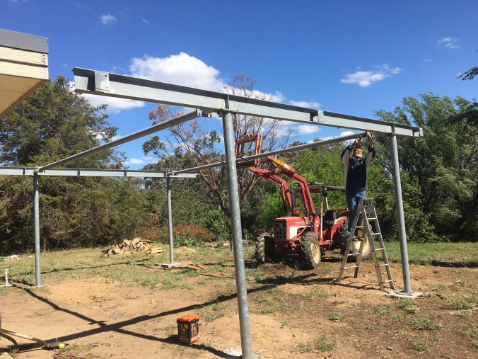 When a friend offered me a second hand carport, late last year, already disassembled, I quickly accepted. We soon had the steel delivered, unloaded and neatly stacked… where it then sat for nearly 11 months.