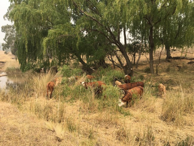 In the meantime, the cattle are hungry. We are feeding hay twice a week, and are supplementing their feed with willow branches. They have learnt to love the sound of the tractor starting up. Obviously Pavlov never fed cattle during a drought, or he may have made is conclusions regarding conditioning much earlier!