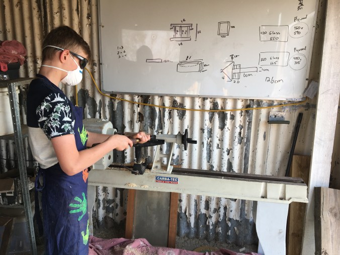 When the air has been a little clearer, we have taken a turn at woodworking. The boys are making some pens and spinning tops. I was lucky we had a stash of P2 dust masks in the shed because every shop is sold out for miles around.