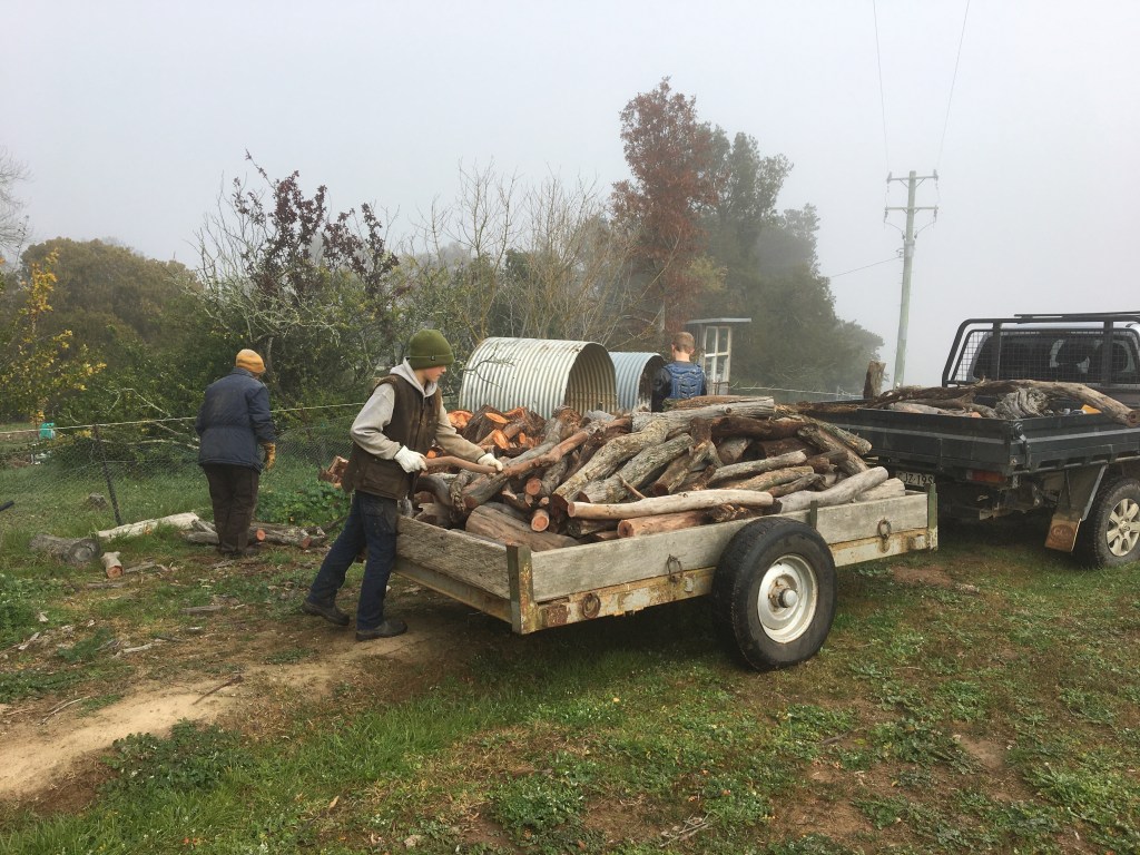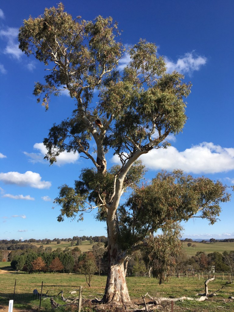 Winter is firewood harvest time. Our neighbours have a great stand of red-box regrowth that we had selectively thinned for firewood about 18 months ago. With that block being recently sold, we took the opportunity to collect the timber we had previously cut. The reason we selected young green branches and trees to harvest is that it encourages the remaining trees to grow large and straight. It ensures we aren’t removing habitat from the area, as most of the hollows required for nesting birds and reptiles are in the large old trees – like the brittle gum below. It also means the timber doesn’t need splitting either – a bonus. We have planted red-box trees on our property, and will be sure to harvest more seed from other red-box trees this year in order to re-establish a stand of these magnificent trees on one of our ridges.