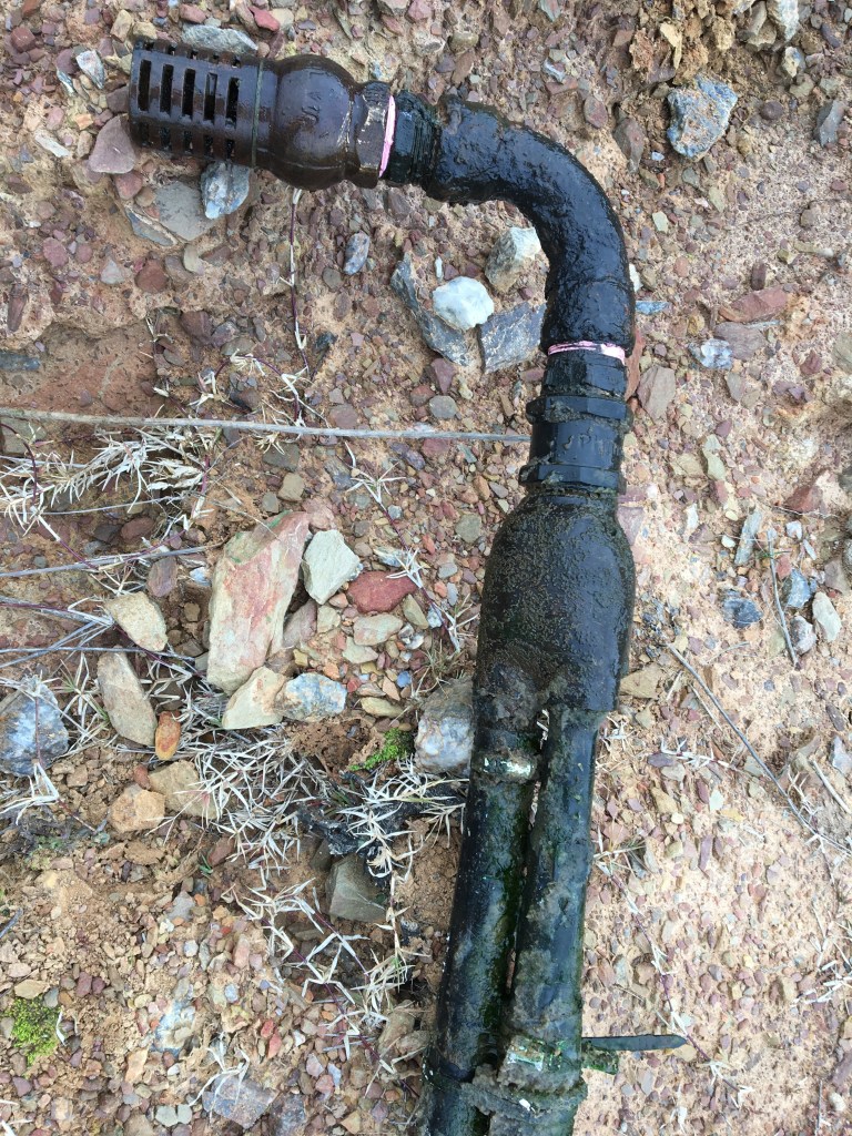 In a forgotten corner of the garden at the end of a spur line we found the leak. The pipe end plug fitting had come away, and the water was pouring down a natural drain, into the garden dam and then cycling back into the big dam…. I might have said EUREKA!!! But I think the actual record would reflect some other word with two less letters.