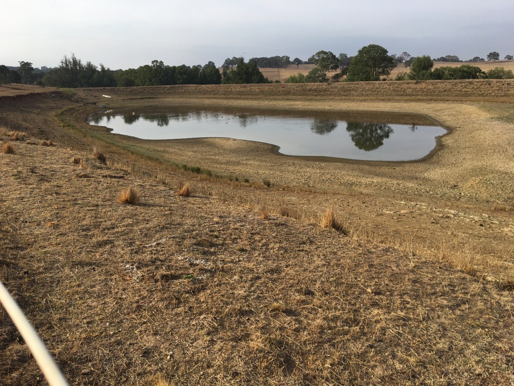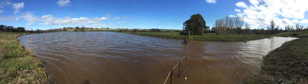 You may remember the dam looking like this back in February. The dam was barely 30cm deep when we received around 80mm of rain overnight. The difference the following day was remarkable… but we had no idea what the dam looked like full.