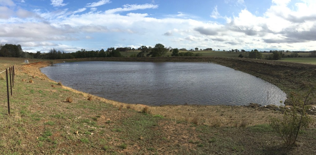 Well this weekend changed all that. The dam filled and then overflowed. It is hard to get some sense of scale from the photo, but the water has risen another 1.5-2 metres or so. With the dam over 200m long and 100m wide, it represents a huge body of water – a wonderful legacy from owners past.