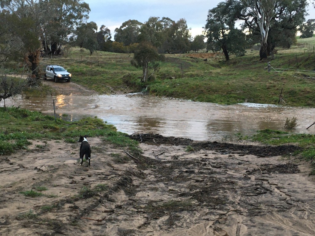 The Rock Farm was fortunate to receive a good soaking last weekend, with over 100mm of rain falling in just 48 hours. The magical beautiful rain soaked into the ground, and when the ground could take no more, it started to fill the creeks, and rivers. All across our valley roads were closed as the waters rose. The only problem was I was in town at work, and as the waters rose, I knew I wouldn’t be getting back home any time soon.