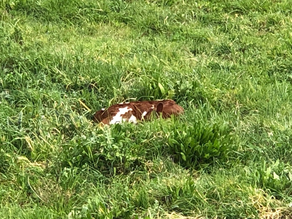 Within a few days we had three more calves on the ground. They are a real delight at this age. They love sleeping in the sun, nestled behind a shrub or even a deep patch of clover.