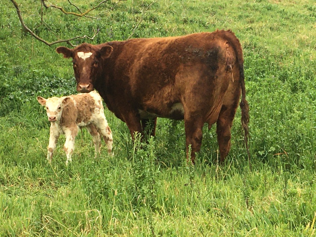 But it isn’t just the grass that is growing. Our beautiful cow’s bellies have been steadily growing bigger all winter. It was a wonderful morning indeed when we welcomed our first calf for 2020.