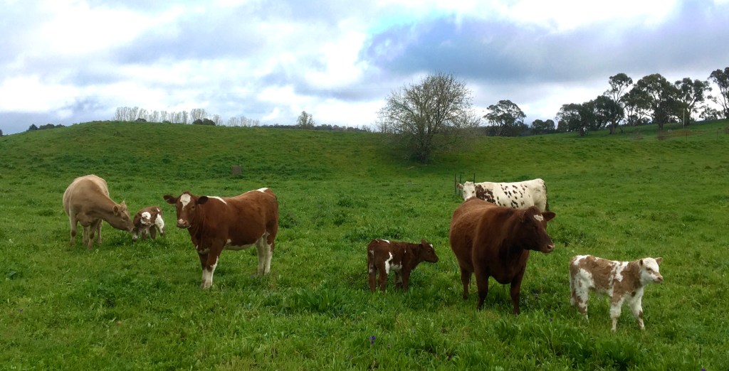 These cattle have become really quiet over the past couple of years. The mother’s are understandably cautious of us, especially when we go wandering among them and their new babies with Sapphire. One incident a couple of days ago I found particularly touching.