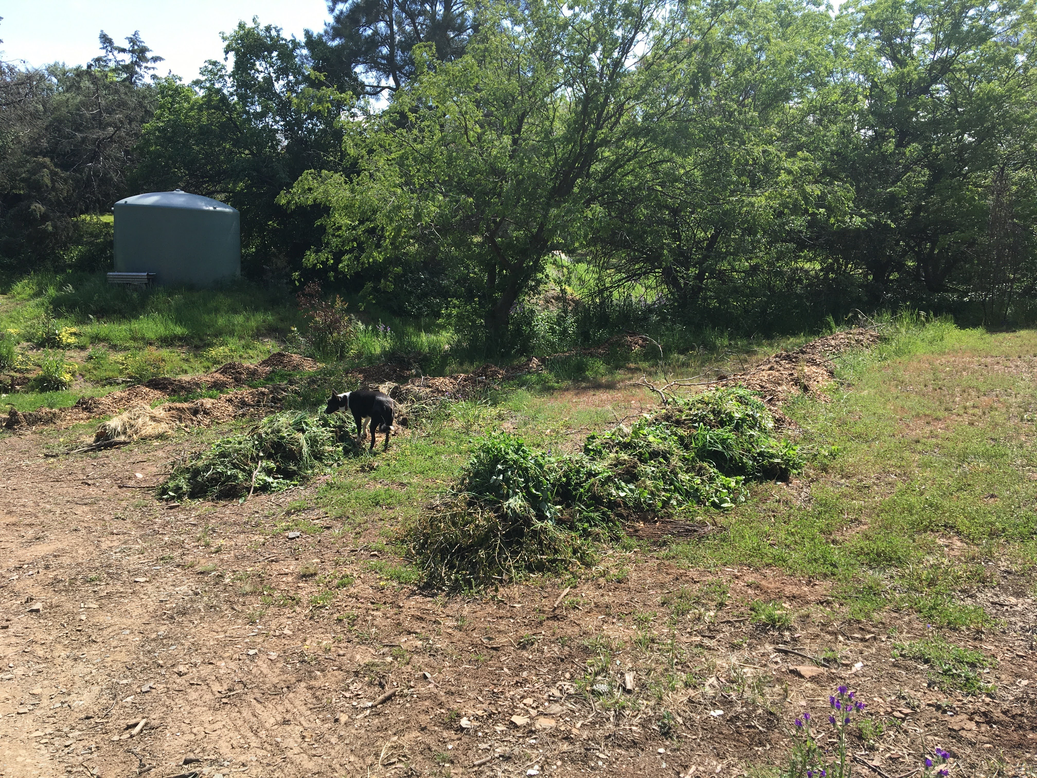 The best thing about a little battery powered chain saw is that you can do a whole heap of pruning before you get caught… It is also the worst thing. I think the shock of seeing the truck laden with clippings caused a moment, but once Jo realised how neater the trees looked I was almost forgiven… almost. The clippings, along with some weeds from garden beds, have been used to make swales in the bottom of the garden to better capture water in the previously dry area.