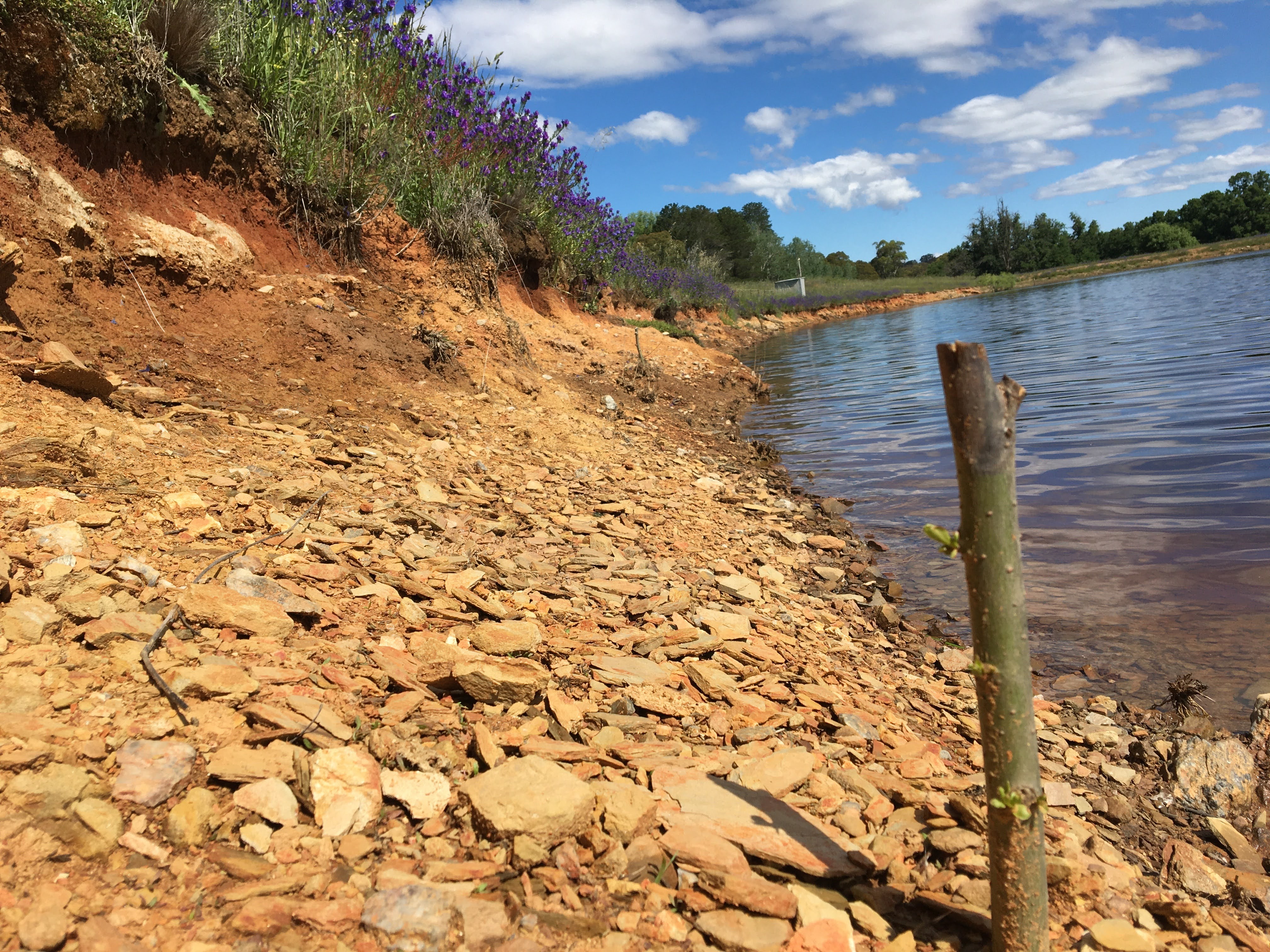 Other things are growing too. I have planted fifty willow cuttings along the leading (and eroding) edge of our dam. It seems most of them have taken and are sprouting green leaves. This is a great result. Some people have queried why I have planted willows along the dam, fearing they use a lot of water. My counter is that they only use water for half the year when they have leaves on them. They will \stabilise the bank, which is their primary purpose. They will give shade when they are bigger, and also provide an emergency stock feed in drought. Being on a dam, they will not enter the catchment either. I hope they continue to grow through the summer and add to the trees on the Rock Farm.