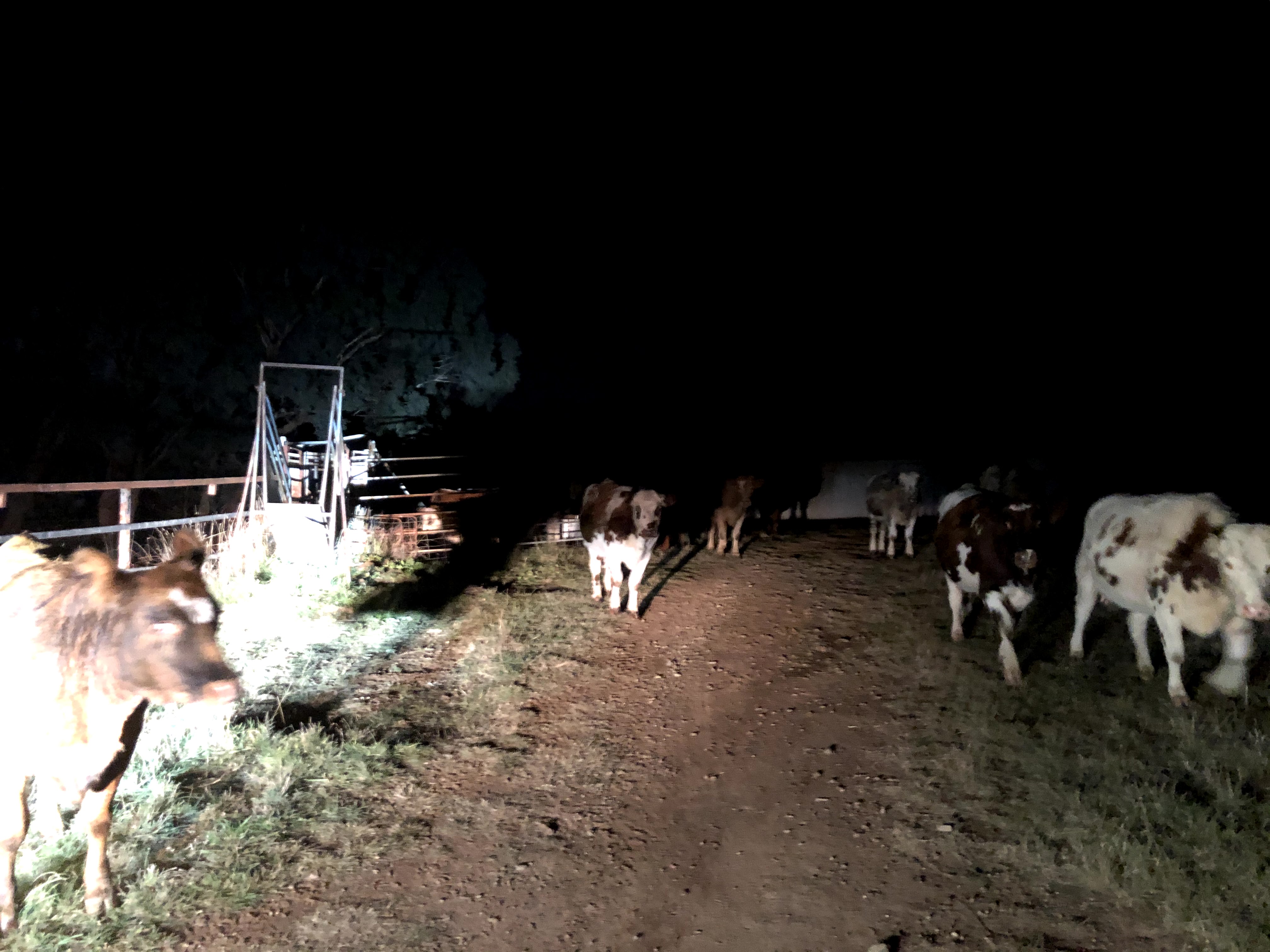 We brought the cattle into the yards, and quietly drafted them into two mobs. We released the mothers into the adjoining paddock, where they seemed to blissfully shrug off the burden of their calves and start feeding. So I moved them an hour later to a nice fresh paddock over the hill, and thought the worst of the weaning process was behind me. Oh how wrong I was.