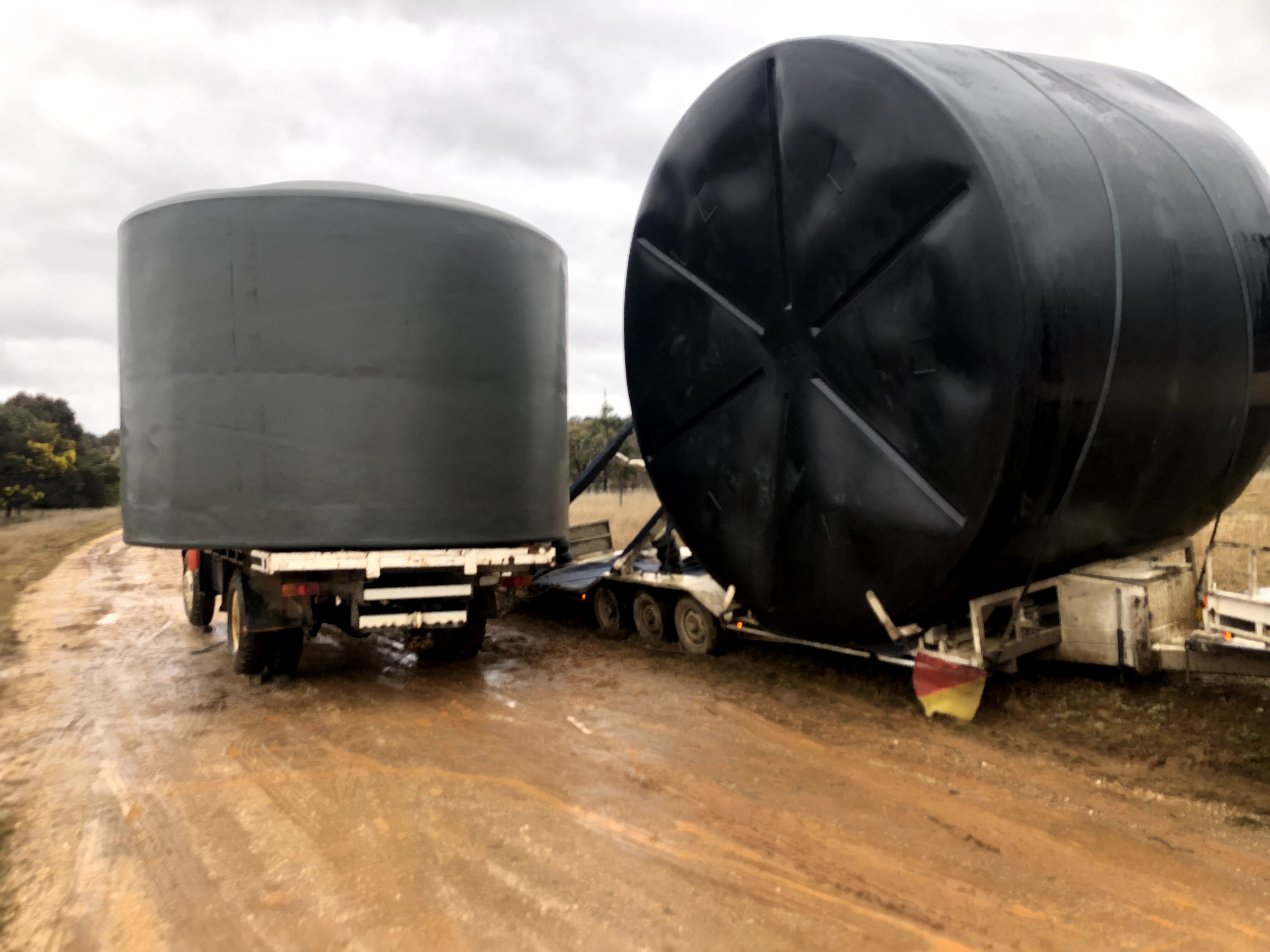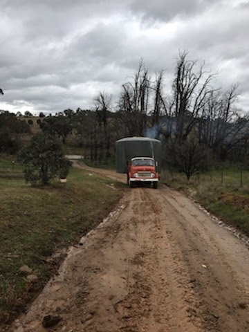 The first event that dragged me outside into the wet was to lend a hand to our neighbour, who needed help with a new water tank delivery. It turned into quite the adventure, with the driveway turned to mush, and the creek (moat?) running deep and fast. The initial plan was to drag the tank delivery truck to the site with the tractor, but when we saw how low his trailer was, we realised it would float downstream on the crossing. Plan B was put into place, which involved rolling the ten thousand gallon, 800kg tank onto the back of Myrtle. This went remarkably well, and we soon had the new tank deposited in our neighbours paddock. Remarkable because no trucks or tractors got bogged during this evolution.