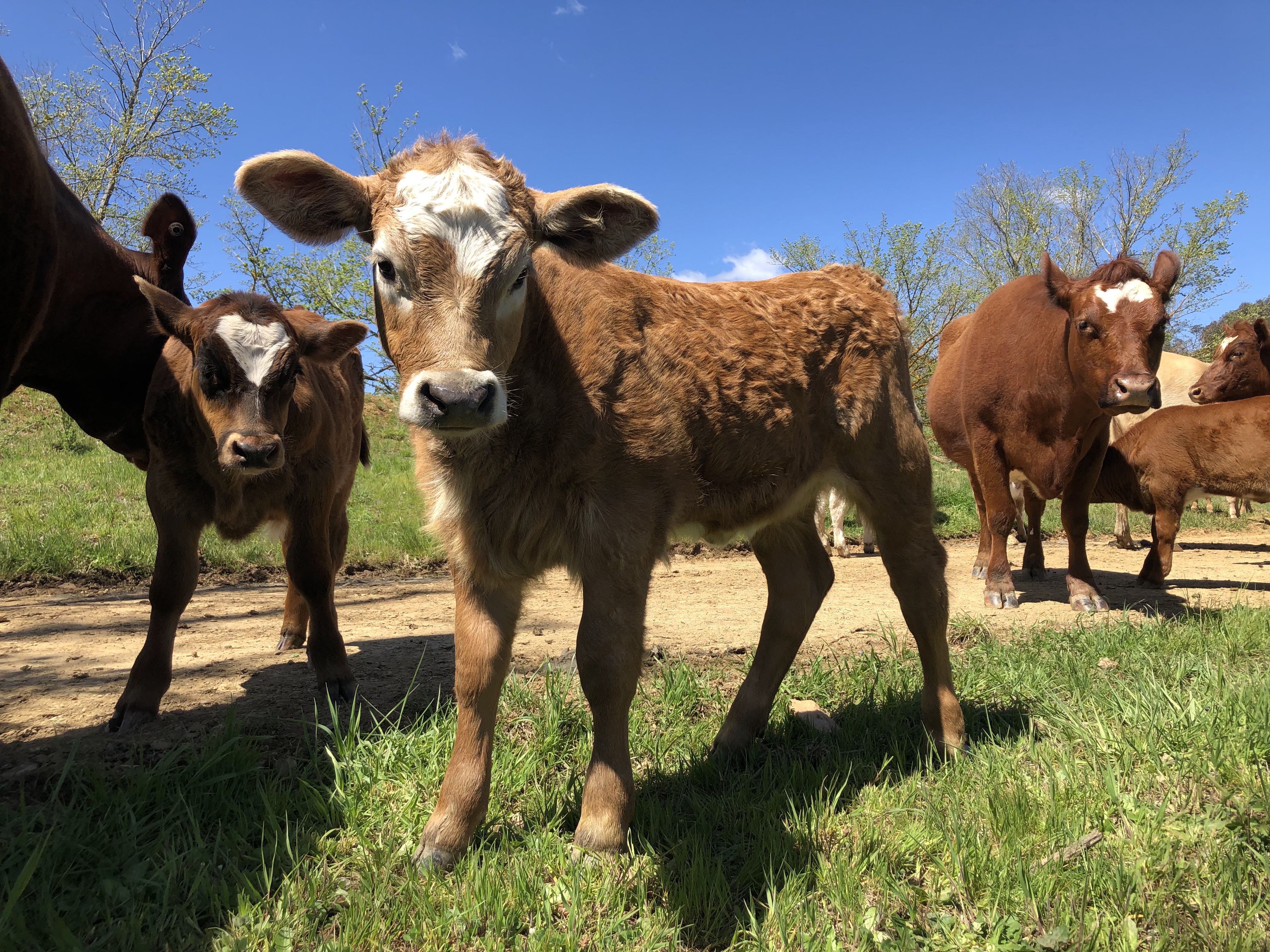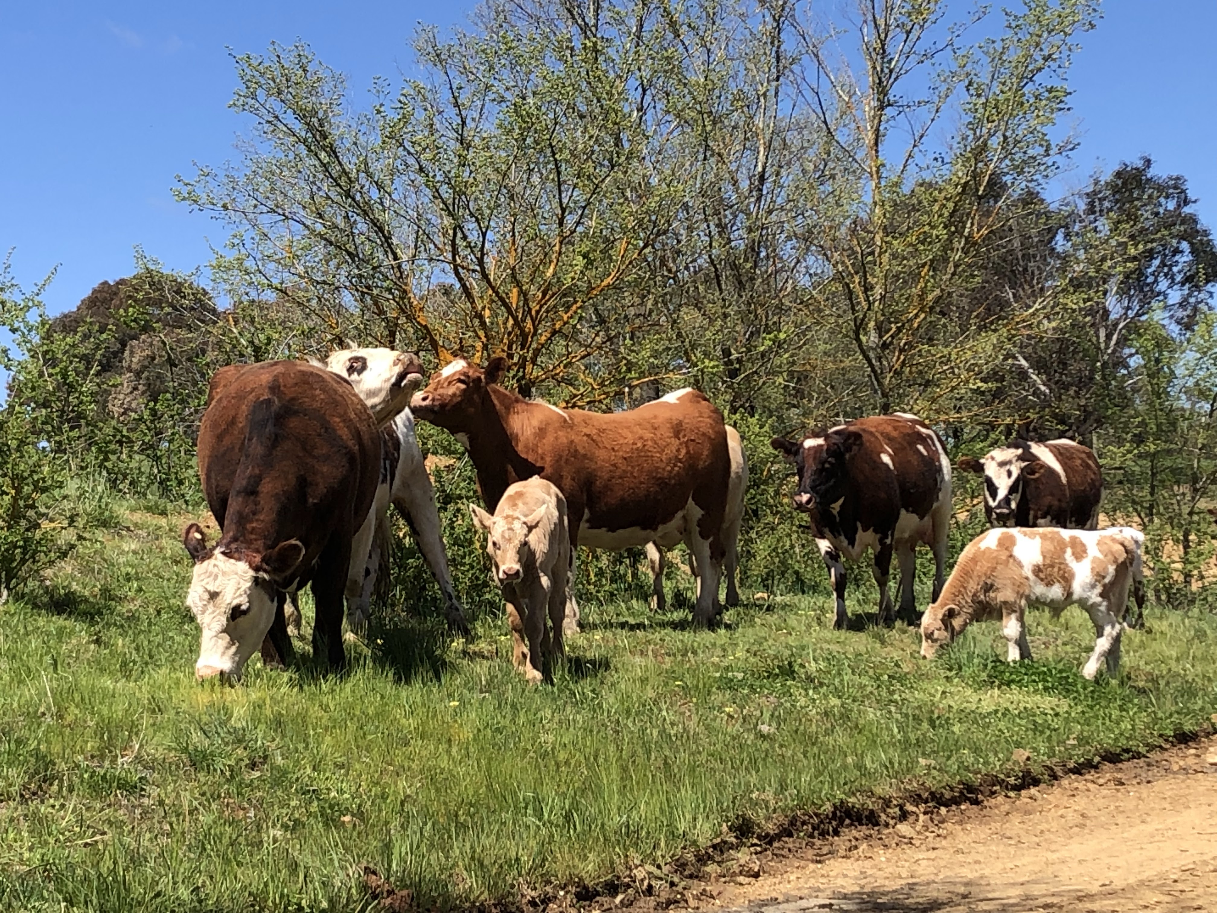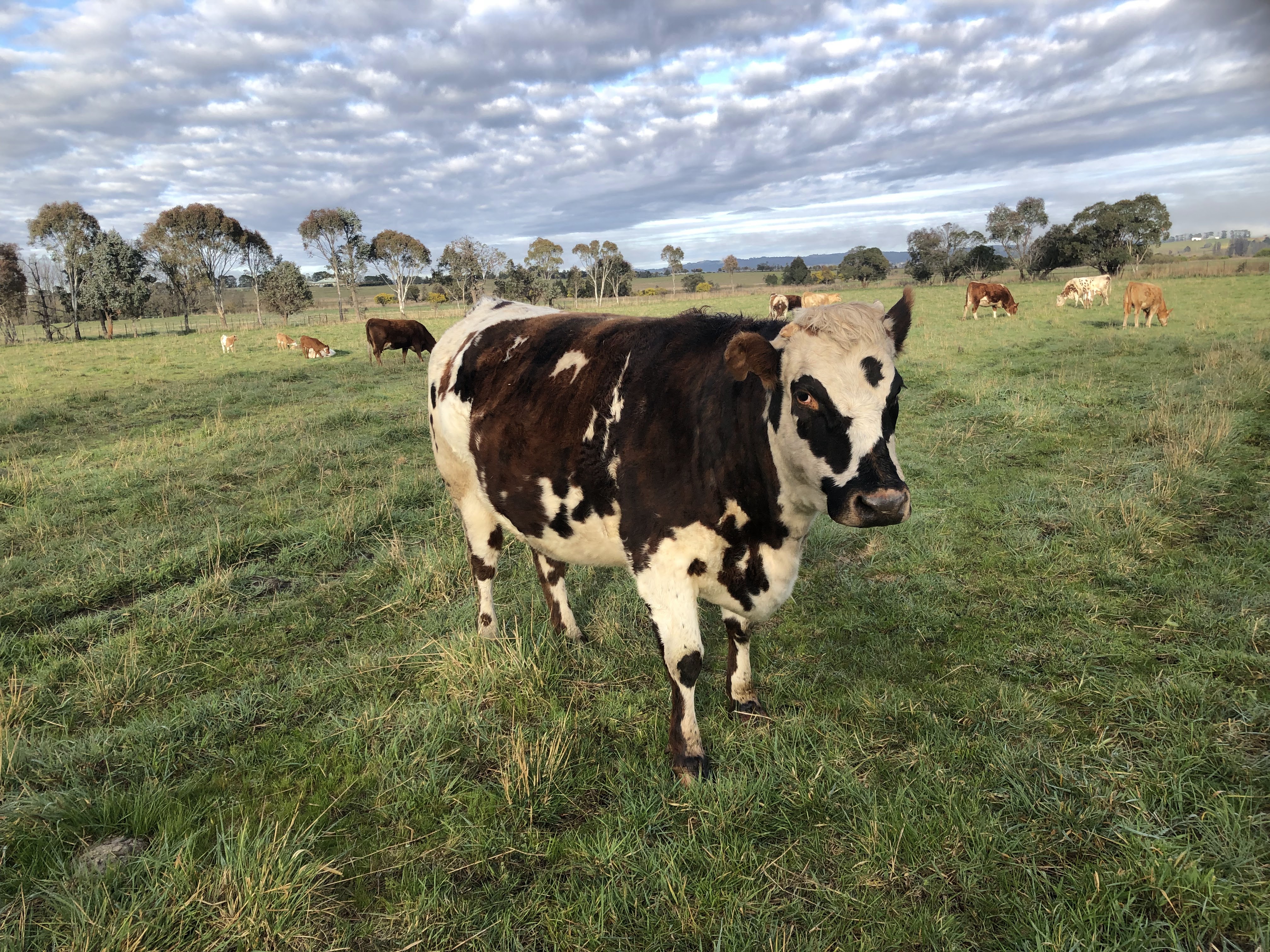 Jimmy happily accepted the change in cartage plans and we picked up our borrowed bull a couple of days later. This magnificent fellow shows is French Normande herritage with his markings and his length. He is also really quiet, and happily settled in with the girls. This year we are joining our 15 cows and 1 heifer with this fellow. They will be due to start calving late July, which is a little early for us, but with the season starting so well, we can only hope it holds.