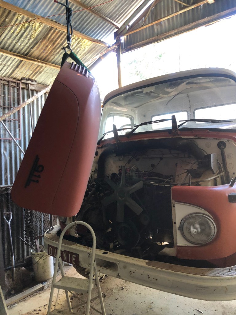 Whilst the OM352 engine fitted to Myrtle is common around the world, there aren’t many in Australia. There are a couple of turbo charged variants available (OM352A) but are expensive. I happened to mention my dilemma to our neighbour and he offered an engine from a spare truck at his place. It is an OM366 – which has the same block. It won’t be a straight swap – I will have to get creative – but the engine is far more affordable – and promises 60 extra horses! It might not make Myrtle any faster, but it might not slow down as much on hills! It hadn’t run in a few years, but after hooking up some new batteries, it fired up straight away – so is the path we are pursuing for now.