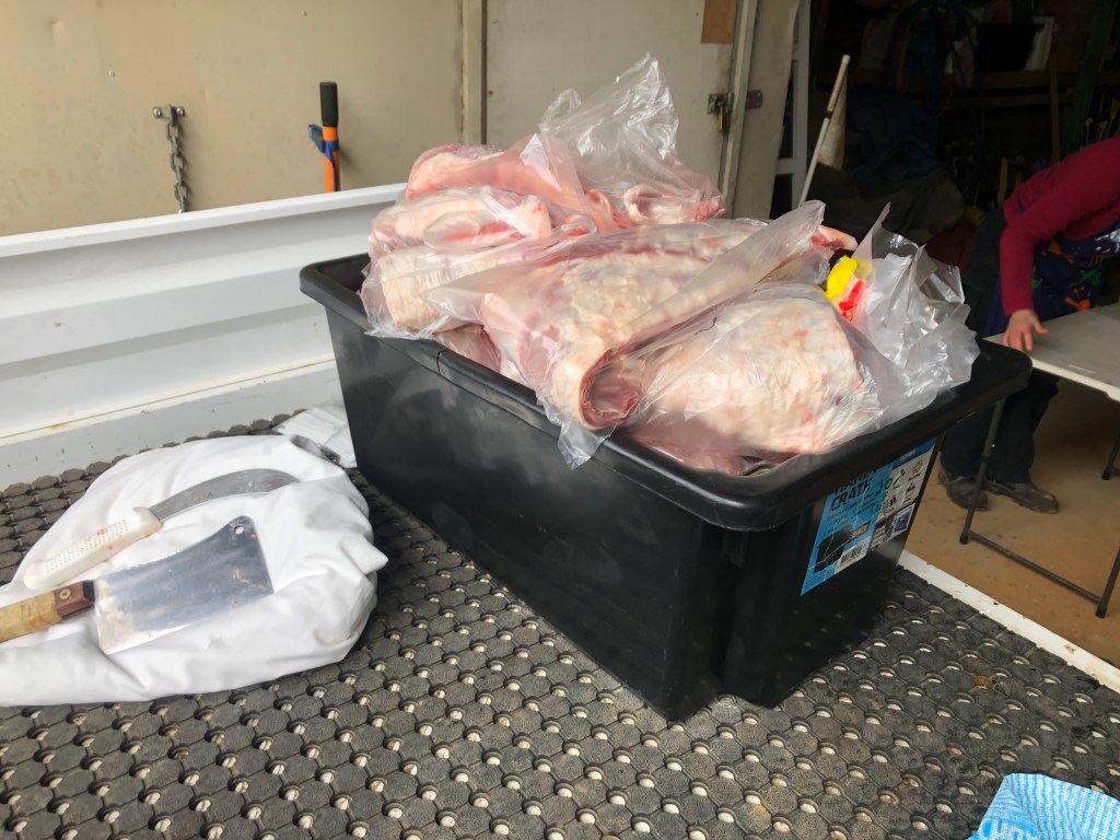 We processed the lambs in pairs, and they taste delicious. The combination of healthy pasture coupled with no stress on the animals leading up to slaughter meant there was no lactic acid build up in the meat. We chilled them for a week or more before running them through the band saw and freezing the meat. We averaged 24kg dressed from each lamb, which filled the freezer nicely. Whilst slaughtering the lambs is not a pleasant task, I take comfort in the fact these animals had a good life with us on the farm, and were shot dead in the paddock without the usual stress of being sold through sale yards, taken to an abattior and slaughtered some 48hours after leaving the farm.