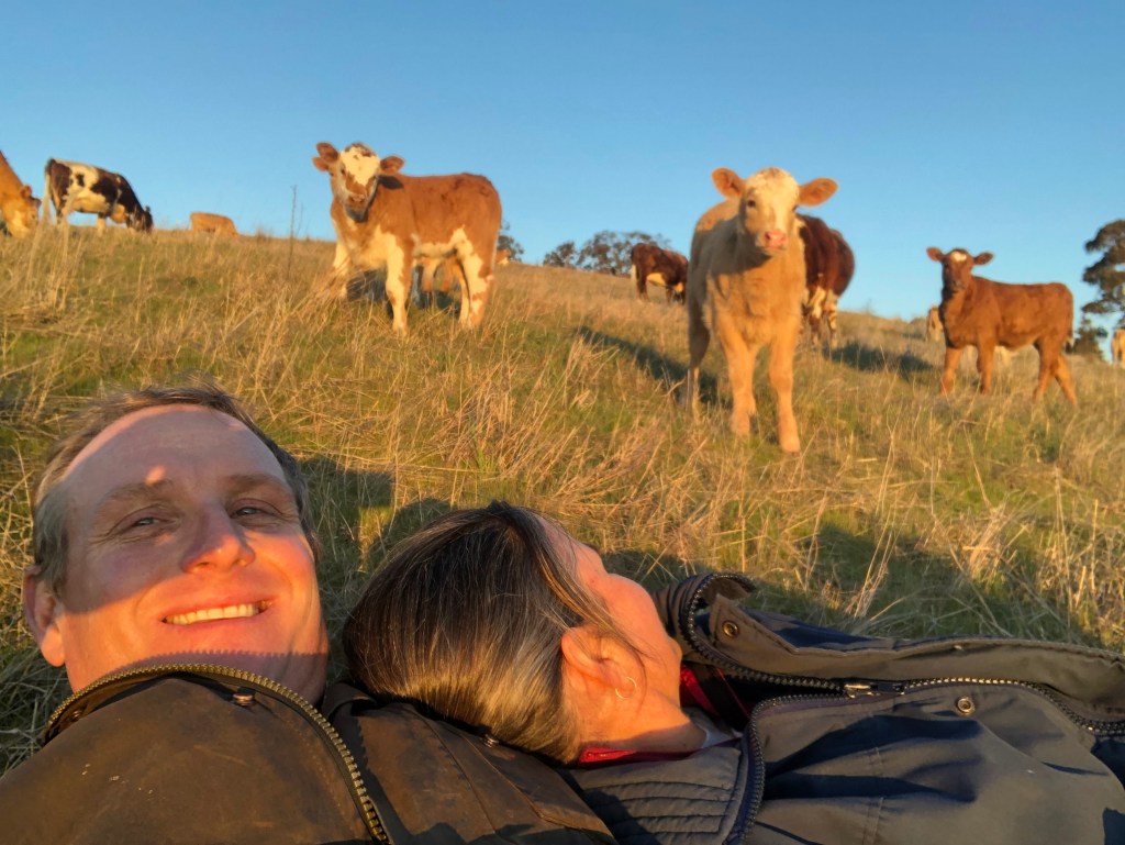 Over the past four weeks we have been welcoming new calves to the Rock Farm. We have now finished calving and have 18 beautiful little calves on the ground. Sadly one died during calving and one cow wasn’t in calf, bringing our calving percentage to 90% from our 20 head. The calves are simply the most delightful creatures, and one of our favourite pastimes is to just sit quietly in the paddock and let them pluck up the courage to sneak up on us.