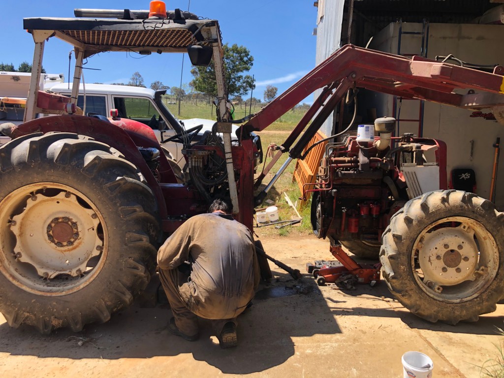 The dry has some advantages, and I have been able to get on top of a few of the mechanical issues we faced a few weeks ago (https://rockfarming.com/2023/10/05/fencing-malfunctions-fires-and-family/). The mower’s transmission units arrived in record time, and in no time I had it back on task knocking the daisy heads off. Local mechanic Dan installed a new clutch in the tractor (so glad he was able to fit me in and get the tractor back on the road in a couple of days). We put a new radiator in the big red truck Myrtle (someone wants to go to his school formal in a certain red, two door Mercedes-Benz) and the same certain someone has managed to replace the head gaskets in his little Subaru, install a new clutch and put the engine back in his car successfully! Talk about a handy run!