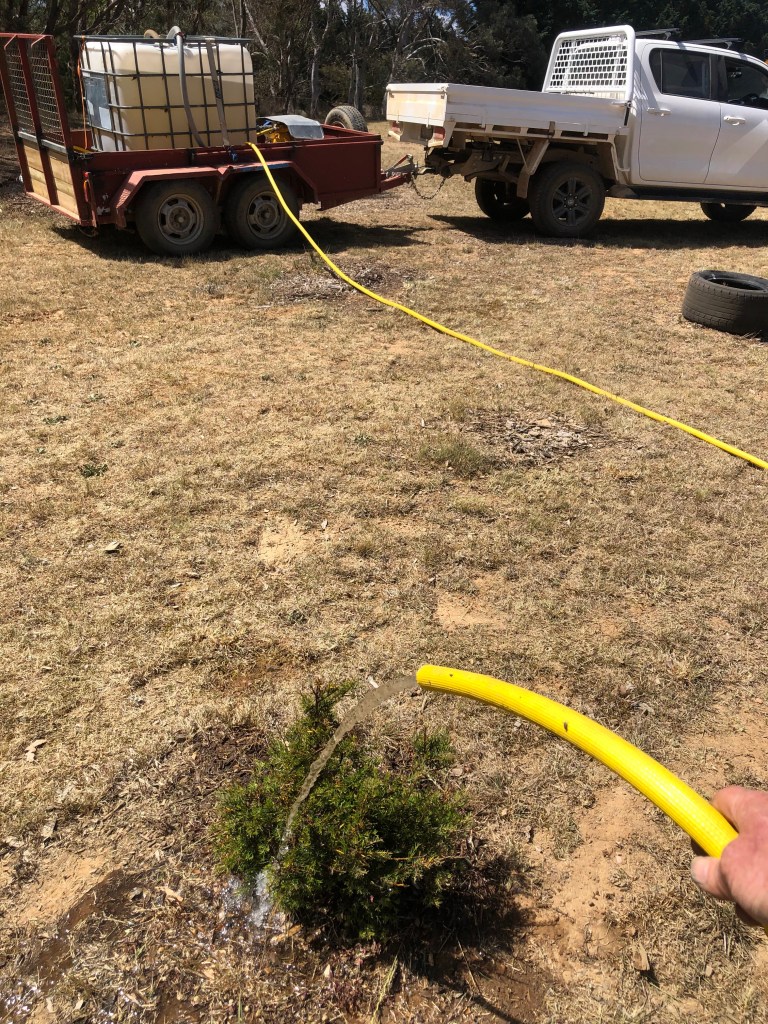 But the dry has also created a couple of other new jobs we need to pay attention to. We have started watering our young trees again – something we haven’t done since January 2020. The old re-purposed horse float is perfectly suited to its new task with the IBC container and fire pump.