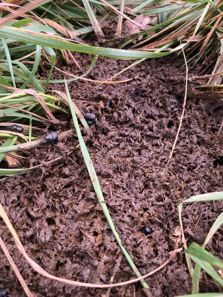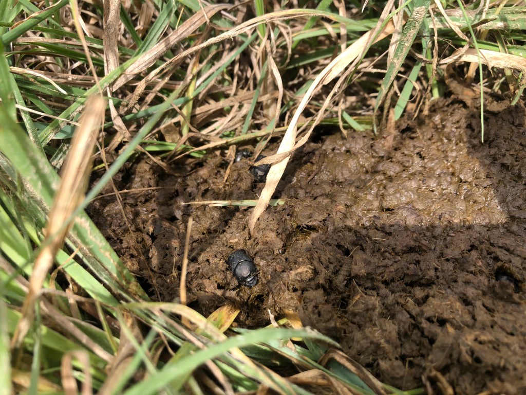 The rain brought some of our hard working little creatures to the surface. A stroll around the paddock after the rain stopped revealed our dung beetles coming up for air from their little burrows beneath the cow pats. These creatures are so important in breaking down manure and turning it into fertilizer – and it was so good to see them working away. Jo is pretty sure these beetles are Onthophasgus Binodis an introduced dung beetle (more info here: https://www.dungbeetles.com.au/species/onthophagus-binodis). Native beetles much prefer the native dung of kangaroos and wombats (of which we have plenty of as well!).