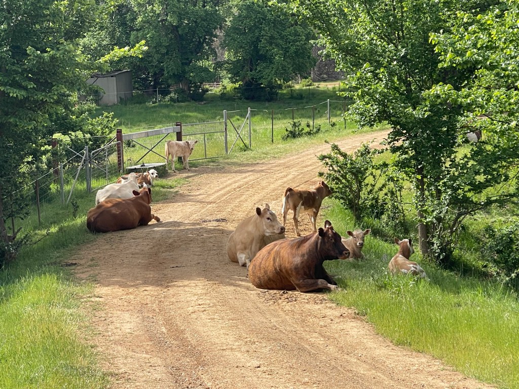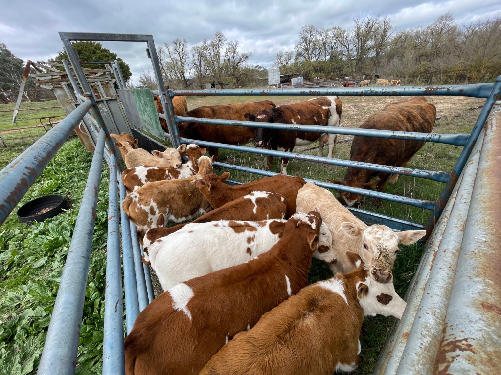 Our calves are growing quickly—ten in total this year. With their attentive mothers looking on, marking and vaccinating was swiftly attended to. We had an even split: five bull calves (now steers) and five heifers.