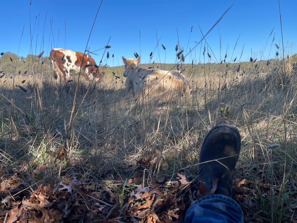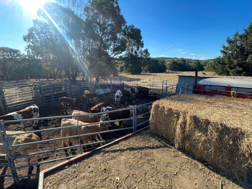 Before the rain arrived, we made the call to wean the calves. It eased the pressure on the cows and allowed us to split the herd across opposite ends of the farm. The calves spent a couple of weeks in the yards being fed and handled, and now that they’re out in the paddock, we’ve been practicing moving them around. It’s remarkable how quickly they’ve settled.