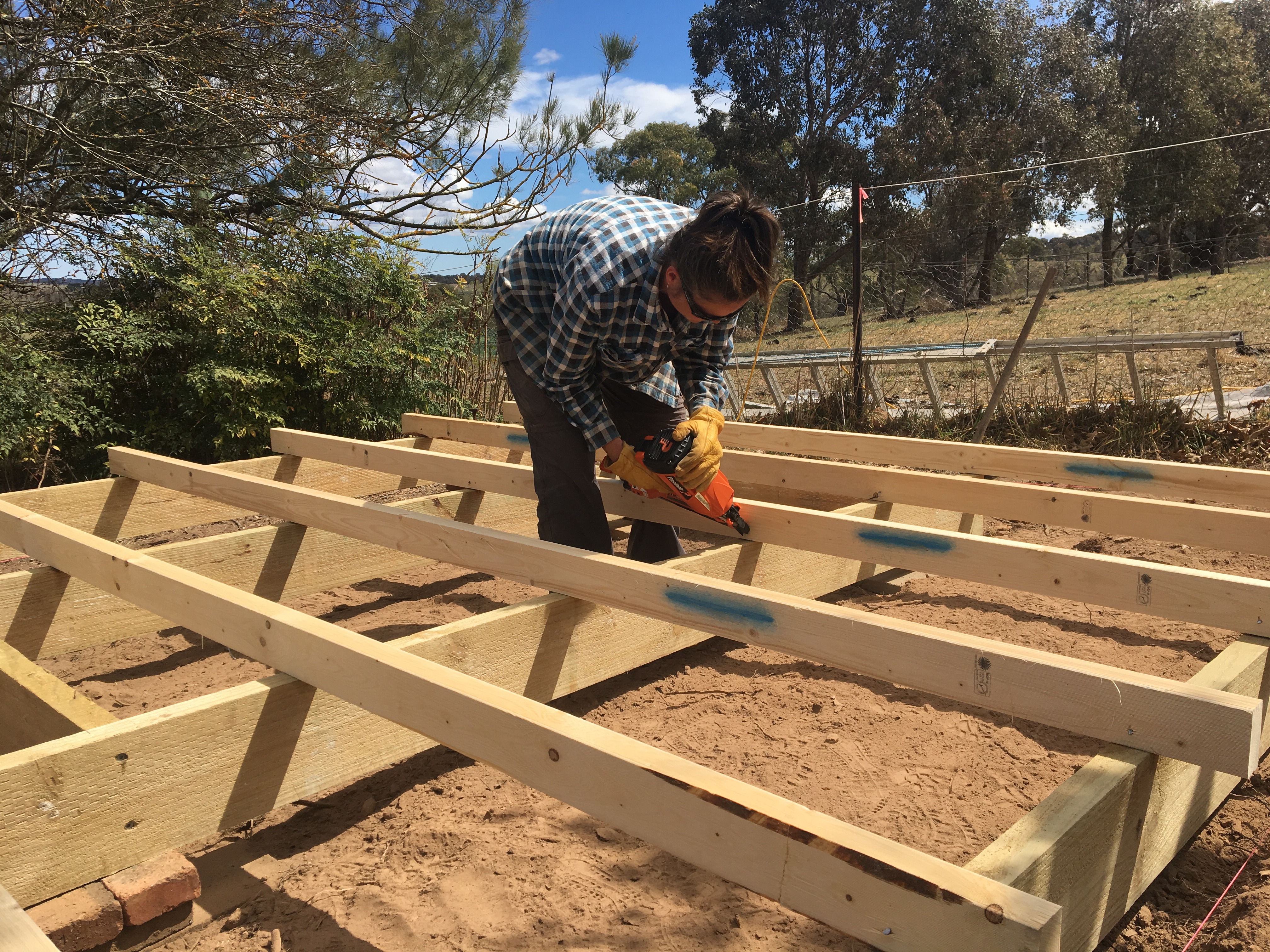 Now comes the fun part. Time to fill the beds with gravel. We constructed a ramp to make it easier to run the wheelbarrow up and tip gravel into the beds. This is done in stages. Firstly a 100mm layer of gravel is put into the base of the beds. We used 20mm recycled concrete for our gravel bed, mainly because it was extremely cheap.