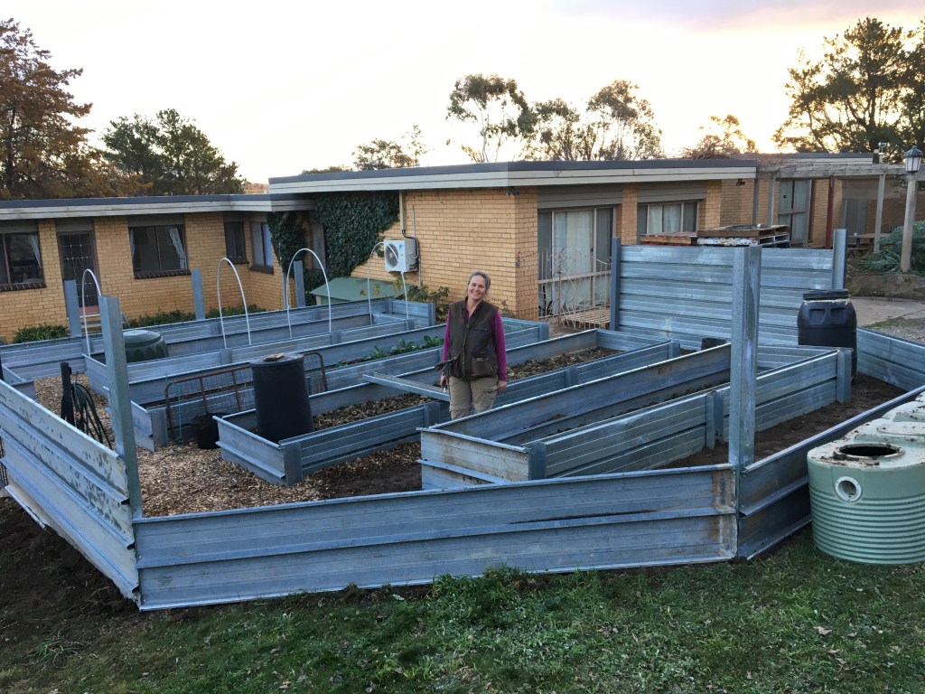 In my previous post, we constructed the base of some self watering wicking garden beds (you can read all about it here). We made our wicking beds out of old railway sleepers, recycled corrugated iron and other timber we had lying around. You can make wicking beds out of anything suitable for holding the weight of the gravel and water you plan on putting in them.